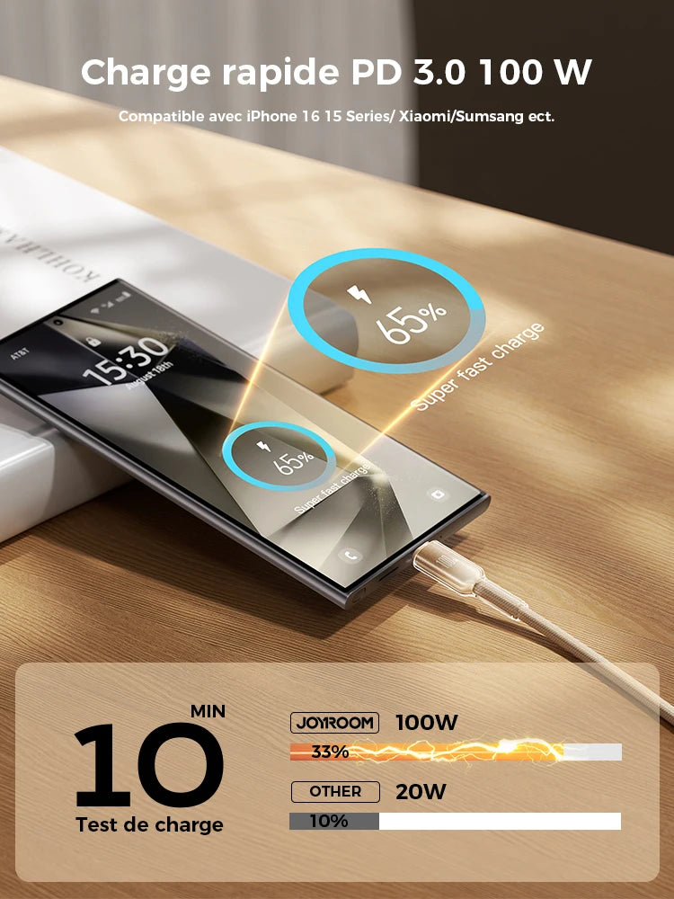 Compatible avec un large éventail de smartphones haut de gamme, ce câble USB‑C 100W est parfait pour les utilisateurs d’iPhone (USB‑C) et d’Android. Il répond parfaitement aux besoins des professionnels comme des particuliers exigeants en matière de performance et de fiabilité.