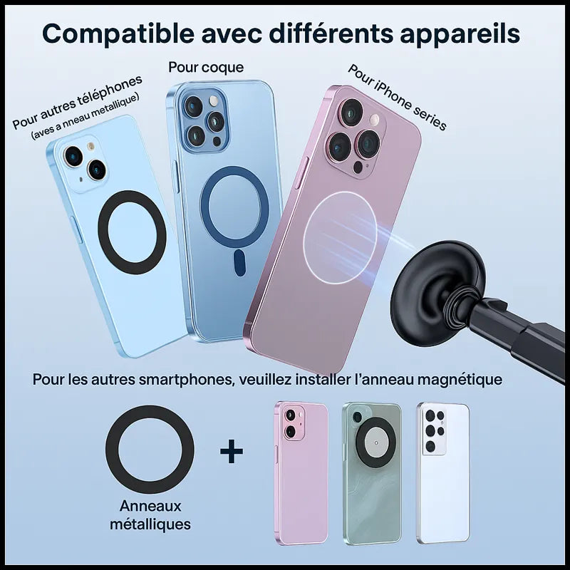 Support Magnétique Mag-Safe pour Voiture – Ventouse Puissante, Bras Long Ajustable