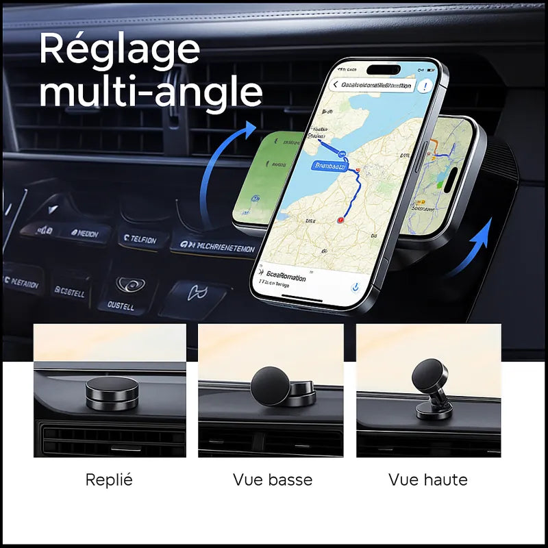Compatible avec tous les smartphones, il s’installe facilement sur la grille d’aération, le pare-brise ou le tableau de bord, selon le modèle. L’objectif est simple : garder ton téléphone accessible, sans risquer une chute, une surchauffe ou une amende. Sa forme discrète et son design soigné s’adaptent à tous les intérieurs, sans abîmer ton véhicule.