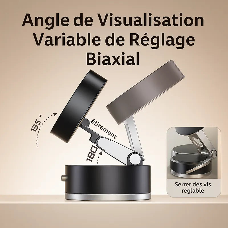 Selon le modèle, la fixation peut se faire sur l’aérateur, par ventouse ou par adhérence, avec des matériaux plus doux au contact. L’objectif est de garantir un maintien solide, sans rayure ni résidu.
