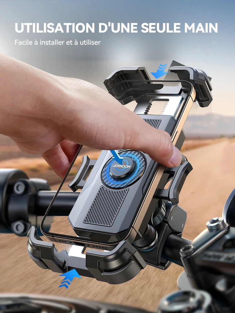Sur une moto, chaque vibration compte. Ce support téléphone moto a été conçu pour les trajets réels, ceux où l’asphalte tremble, où la pluie tombe, où les gants restent enfilés. Fixé directement sur le guidon, il maintient ton smartphone avec fermeté, même à haute vitesse ou sur route irrégulière.