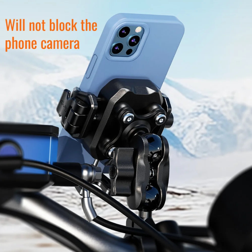 Sur une moto, chaque vibration compte. Ce support téléphone moto a été conçu pour les trajets réels, ceux où l’asphalte tremble, où la pluie tombe, où les gants restent enfilés. Fixé directement sur le guidon, il maintient ton smartphone avec fermeté, même à haute vitesse ou sur route irrégulière.