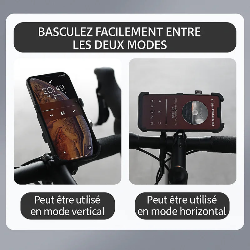 Fixation rapide, compatibilité universelle, et design discret : tout est conçu pour les cyclistes qui veulent rester connectés sans sacrifier leur fluidité. Que tu suives ton itinéraire GPS, que tu suives ta cadence ou que tu restes joignable pendant tes trajets, ton téléphone ne bouge pas. Tu roules, lui aussi.