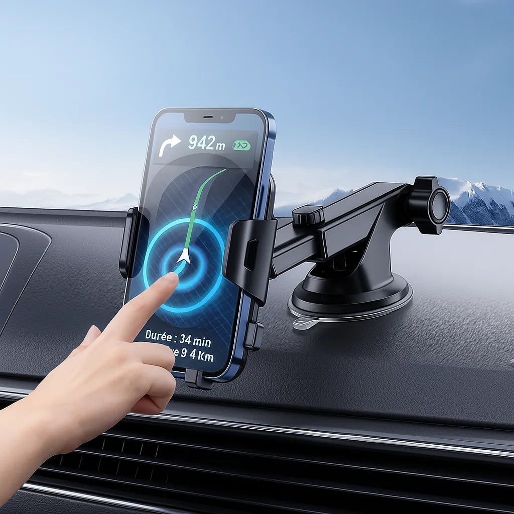 Ce support téléphone pour voiture a été conçu pour ceux qui roulent tous les jours. Grâce à sa fixation stable, il reste en place même dans les virages ou sur routes déformées. Le téléphone est bien visible sans gêner le champ de vision, pour suivre le GPS, prendre un appel ou changer une musique en toute sécurité.