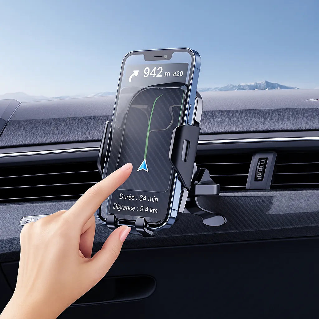Compatible avec tous les smartphones, il s’installe facilement sur la grille d’aération, le pare-brise ou le tableau de bord, selon le modèle. L’objectif est simple : garder ton téléphone accessible, sans risquer une chute, une surchauffe ou une amende. Sa forme discrète et son design soigné s’adaptent à tous les intérieurs, sans abîmer ton véhicule.