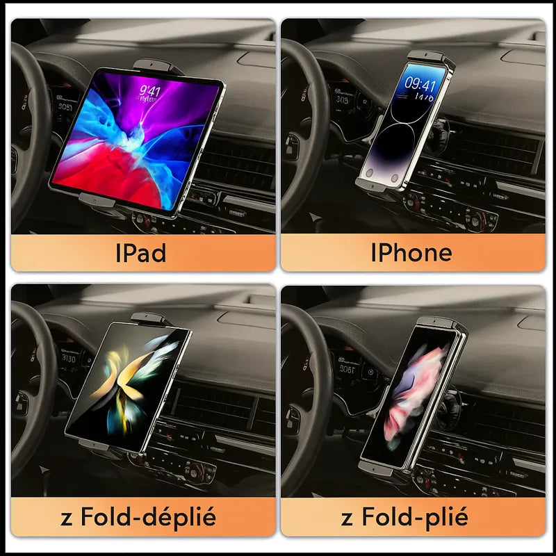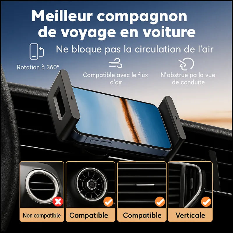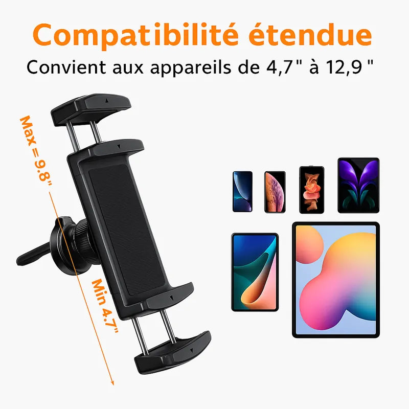 Support voiture téléphone 360° sur grille d'aération – 4,7–12,9 pouces – iPhone/Tablette/Samsung Z Fold