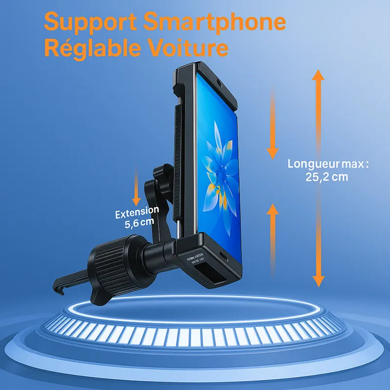 Compatible avec tous les smartphones, il s’installe facilement sur la grille d’aération, le pare-brise ou le tableau de bord, selon le modèle. L’objectif est simple : garder ton téléphone accessible, sans risquer une chute, une surchauffe ou une amende. Sa forme discrète et son design soigné s’adaptent à tous les intérieurs, sans abîmer ton véhicule.