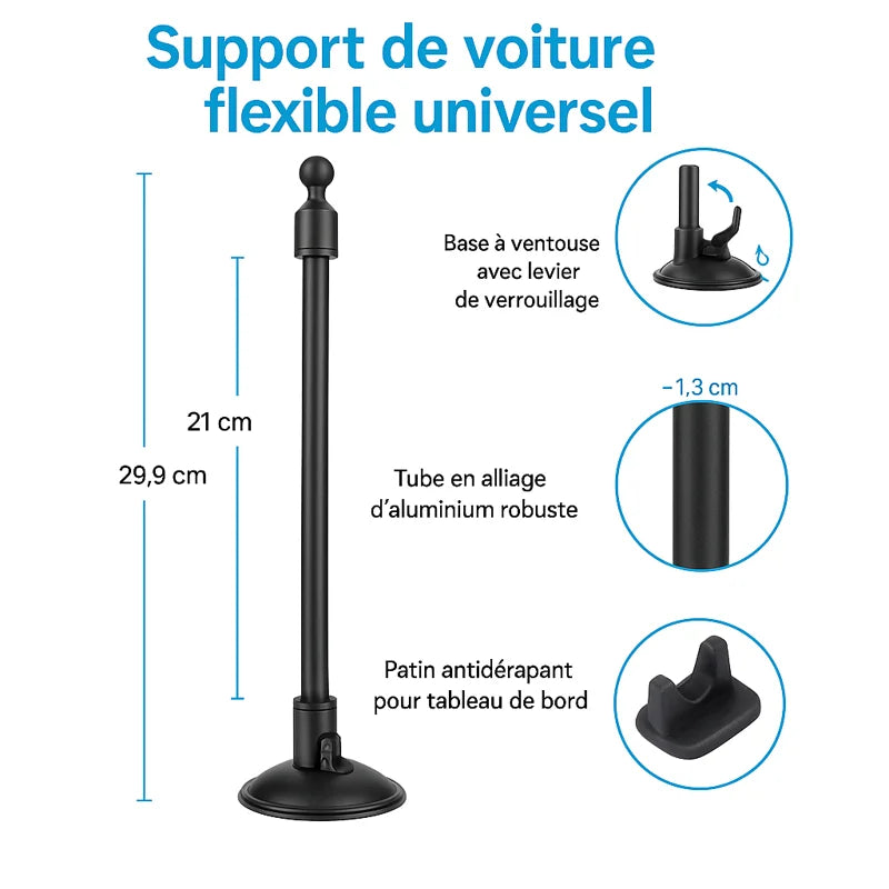 Compatible avec tous les smartphones, il s’installe facilement sur la grille d’aération, le pare-brise ou le tableau de bord, selon le modèle. L’objectif est simple : garder ton téléphone accessible, sans risquer une chute, une surchauffe ou une amende. Sa forme discrète et son design soigné s’adaptent à tous les intérieurs, sans abîmer ton véhicule.